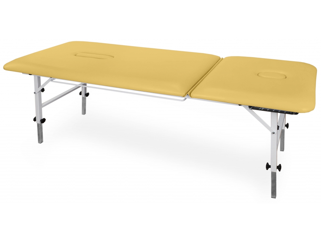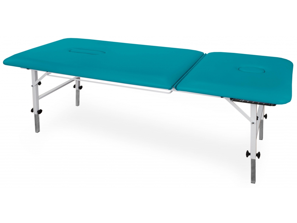 DONNA, noul pat de tratament din metal, având structura din oțel acoperită cu vopsea pulbere, oferă poziționarea pacientului prin capul reglabil, iar liniile ovale ale marginilor îi conferă un aspect elegant.