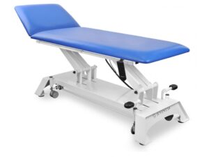 Masă modernă din două secţiuni cu înălţime reglabilă cu ajutorul unei servomotor, optim în reabilitare, kinetoterapie și masaj.